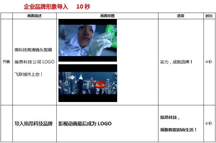 指昂科技 高清宣傳片策劃腳本:
